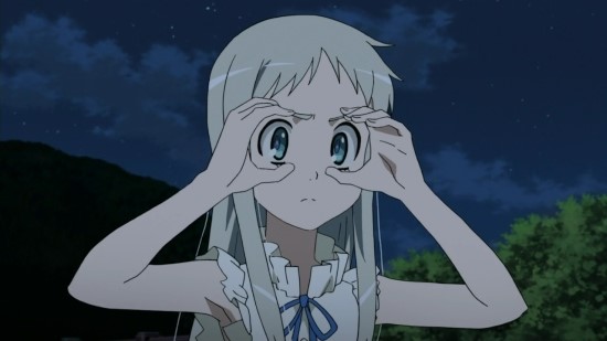 어느날 갑자기 진타의 앞에 나타난 소꿉친구 소녀. 실은 예전에 사망했기 때문에 유령과 같은 존재라 할 수 있으며, 진타를 제외한 이들에게는 보이지 않는다. 전체적으로 하얗고 덧없는 이미지가 인상에 남으며, 천진난만한 성격과 행동은 옛날과 전혀 달라지지 않았다.