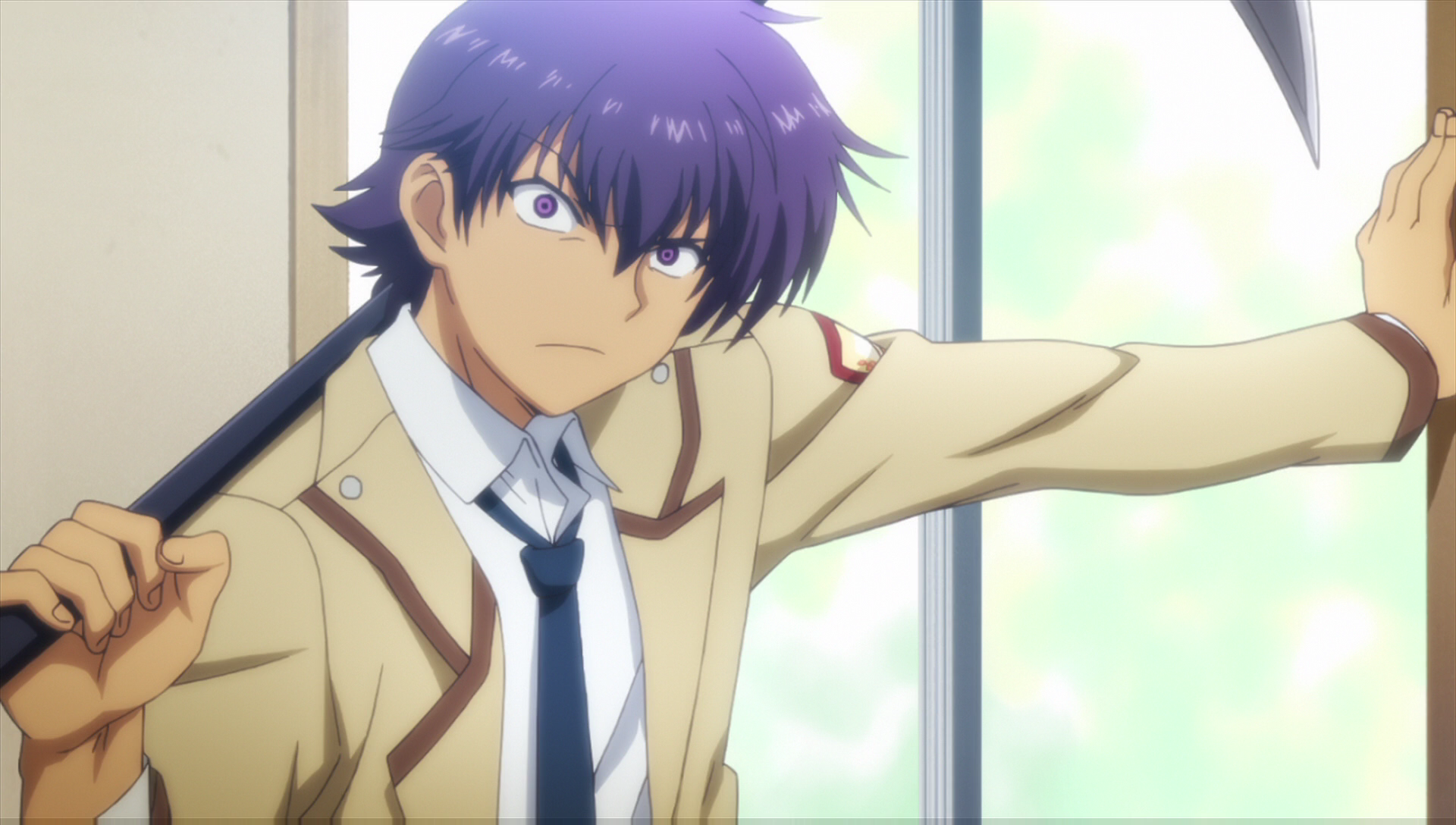 '사후 세계 전선'에서 가장 바보인 녀석으로 항상 자신의 무기인 '할버드'를 들고 다니며 유리 이외의 사람들의 지시에 따르지 않는 태도도 보이고 독단적으로 행동하며 오오야마의 말에 따르면 '시츄에이션을 중시'하는 듯 하다. '사후 세계 전선'의 본부에 있는 함정은 자신이 설치했지만 오토나시를 보고 그를 인정할 수 없다며 잡아으려하다 함정을 설치했단 사실을 깜빡해 자기가 설치한 함정에 걸리는 바보같은 면모를 보였다.