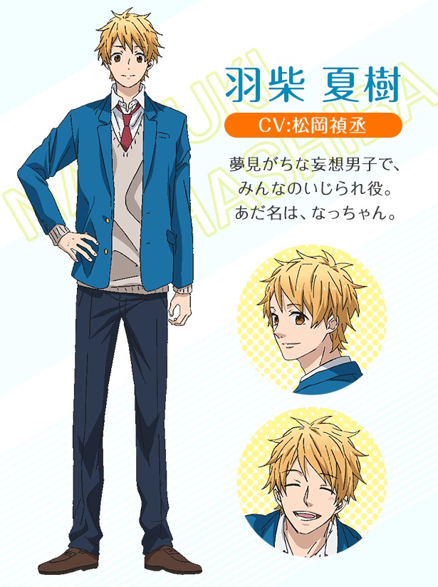 하시바 나츠키 (HASHIBA NATSUKI)|羽柴夏樹 프로필 [로그] [정보수정] 소녀틱한 꿈을 자주 꾸는 망상남. 별명은 낫쨩. 모두에게 놀림당한다 설정화 [설정화 등록] 삭제삭제 명대사 [명대사 등록] 명대사를 등록하여주세요. 무지개빛 데이즈|2016.01.10