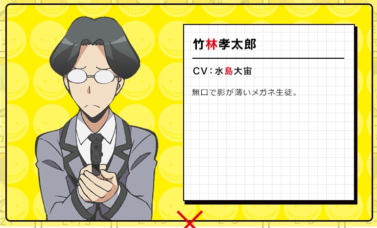타케바야시 코타로 (TAKEBAYASHI KOUTAROU)|竹林孝太郎 프로필 [로그] [정보수정] 프로필을 등록하여주세요. 설정화 [설정화 등록] 설정화를 등록하여주세요. 명대사 [명대사 등록] 명대사를 등록하여주세요. 암살교실 2|2016.01.08 암살교실|2015.01.10