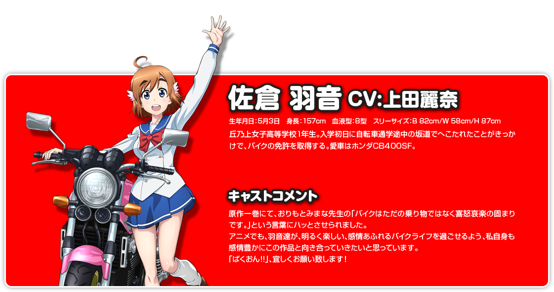 사쿠라 하네 (SAKURA HANE)|佐倉羽音 생일 05.03 프로필 [로그] [정보수정] 프로필을 등록하여주세요. 설정화 [설정화 등록] 삭제삭제 명대사 [명대사 등록] 명대사를 등록하여주세요. 바쿠온!!|2016.04.05