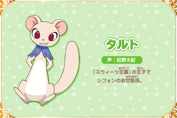 타르트 (TART)|タルト 프로필 [로그] [정보수정] 프로필을 등록하여주세요. 설정화 [설정화 등록] 삭제 명대사 [명대사 등록] 명대사를 등록하여주세요. 도쿄 뮤우뮤우 뉴~♡ (2023)|2023.04.05 세계 최고의 암살자, 이세계 귀족으로 전생하다|2021.10.06 허긋토! 프리큐어|2018.02.04 프리큐어 올스타즈 모두 함께 노래하는 기적의 마법!|2016.03.19 프리큐어 올스타즈 봄의 카니발♪|2015.03.14 프리큐어 올스타즈 뉴 스테이지 3 영원한 친구|2014.03.15 프리큐어 올스타즈 뉴스테이지2 마음의 친구|2013.03.16 프리큐어 올스타즈New Stage 미래의 친구들|2012.03.17 프리큐어 올스타즈 dx 3 - 미래에 닿아라! 세계를 잇는☆무지개빛 꽃|2011.03.19 프리큐어 올스타즈DX2 희망의 빛, 레인보우쥬엘을 지켜라|2010.03.20 프리큐어 올스타즈 DX 모두 친구-기적의 전원대집합!|2009.03.20 프레시 프리큐어|2009.02.01