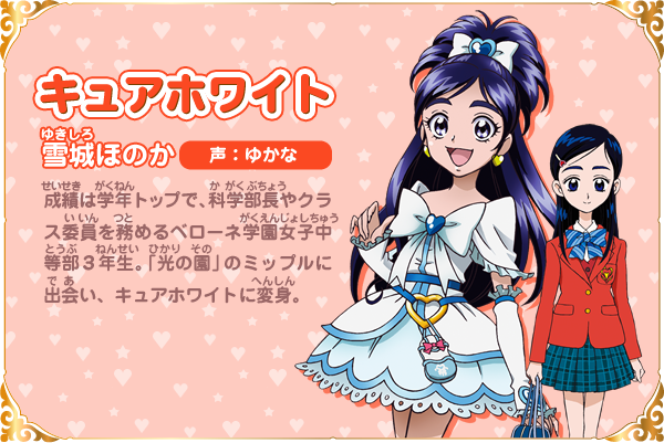 유키시로 호노카 (YUKISIRO HONOKA)|雪城ほのか 프로필 [로그] [정보수정] 프로필을 등록하여주세요. 설정화 [설정화 등록] 삭제 명대사 [명대사 등록] 명대사를 등록하여주세요. 희망의 힘 ~어른 프리큐어 23~|2023.10.07 프리큐어 미라클 유니버스|2019.03.16 허긋토! 프리큐어 ♡ 두사람은 프리큐어|2018.10.27 허긋토! 프리큐어|2018.02.04 프리큐어 올스타즈 모두 함께 노래하는 기적의 마법!|2016.03.19 프리큐어 올스타즈 봄의 카니발♪|2015.03.14 프리큐어 올스타즈 뉴 스테이지 3 영원한 친구|2014.03.15 프리큐어 올스타즈 뉴스테이지2 마음의 친구|2013.03.16 프리큐어 올스타즈New Stage 미래의 친구들|2012.03.17 프리큐어 올스타즈 dx 3 - 미래에 닿아라! 세계를 잇는☆무지개빛 꽃|2011.03.19 프리큐어 올스타즈DX2 희망의 빛, 레인보우쥬엘을 지켜라|2010.03.20 프리큐어 올스타즈 DX 모두 친구-기적의 전원대집합!|2009.03.20 두 사람은 프리큐어 Max Heart|2005.02.06 두 사람은 프리큐어|2004.02.01