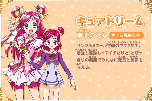 유메하라 노조미 (YUMEHARA NOJOMI)|夢原のぞみ 프로필 [로그] [정보수정] 프로필을 등록하여주세요. 설정화 [설정화 등록] 삭제 명대사 [명대사 등록] 명대사를 등록하여주세요. 희망의 힘 ~어른 프리큐어 23~|2023.10.07 허긋토! 프리큐어 ♡ 두사람은 프리큐어|2018.10.27 허긋토! 프리큐어|2018.02.04 프리큐어 올스타즈 모두 함께 노래하는 기적의 마법!|2016.03.19 프리큐어 올스타즈 봄의 카니발♪|2015.03.14 프리큐어 올스타즈 뉴 스테이지 3 영원한 친구|2014.03.15 프리큐어 올스타즈 뉴스테이지2 마음의 친구|2013.03.16 프리큐어 올스타즈New Stage 미래의 친구들|2012.03.17 프리큐어 올스타즈 dx 3 - 미래에 닿아라! 세계를 잇는☆무지개빛 꽃|2011.03.19 프리큐어 올스타즈DX2 희망의 빛, 레인보우쥬엘을 지켜라|2010.03.20 프리큐어 올스타즈 DX 모두 친구-기적의 전원대집합!|2009.03.20 예스! 프리큐어 파이브 GoGo!|2008.02.03 예스! 프리큐어 파이브|2007.02.04