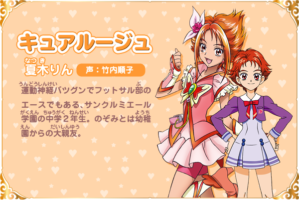 나츠키 린 (NATSUKI RIN)|夏木りん 프로필 [로그] [정보수정] 프로필을 등록하여주세요. 설정화 [설정화 등록] 삭제 명대사 [명대사 등록] 명대사를 등록하여주세요. 희망의 힘 ~어른 프리큐어 23~|2023.10.07 허긋토! 프리큐어 ♡ 두사람은 프리큐어|2018.10.27 프리큐어 올스타즈 모두 함께 노래하는 기적의 마법!|2016.03.19 프리큐어 올스타즈 봄의 카니발♪|2015.03.14 프리큐어 올스타즈 뉴 스테이지 3 영원한 친구|2014.03.15 프리큐어 올스타즈 뉴스테이지2 마음의 친구|2013.03.16 프리큐어 올스타즈New Stage 미래의 친구들|2012.03.17 프리큐어 올스타즈 dx 3 - 미래에 닿아라! 세계를 잇는☆무지개빛 꽃|2011.03.19 프리큐어 올스타즈DX2 희망의 빛, 레인보우쥬엘을 지켜라|2010.03.20 프리큐어 올스타즈 DX 모두 친구-기적의 전원대집합!|2009.03.20 예스! 프리큐어 파이브 GoGo!|2008.02.03 예스! 프리큐어 파이브|2007.02.04