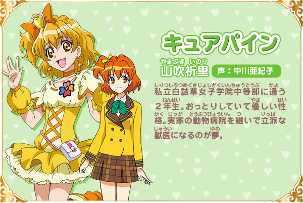 야마부키 이노리 (YAMABUKI INORI)|山吹祈里 프로필 [로그] [정보수정] 프로필을 등록하여주세요. 설정화 [설정화 등록] 삭제 명대사 [명대사 등록] 명대사를 등록하여주세요. 허긋토! 프리큐어 ♡ 두사람은 프리큐어|2018.10.27 프리큐어 올스타즈 모두 함께 노래하는 기적의 마법!|2016.03.19 프리큐어 올스타즈 봄의 카니발♪|2015.03.14 프리큐어 올스타즈 뉴 스테이지 3 영원한 친구|2014.03.15 프리큐어 올스타즈 뉴스테이지2 마음의 친구|2013.03.16 프리큐어 올스타즈New Stage 미래의 친구들|2012.03.17 프리큐어 올스타즈 dx 3 - 미래에 닿아라! 세계를 잇는☆무지개빛 꽃|2011.03.19 프리큐어 올스타즈DX2 희망의 빛, 레인보우쥬엘을 지켜라|2010.03.20 프리큐어 올스타즈 DX 모두 친구-기적의 전원대집합!|2009.03.20 프레시 프리큐어|2009.02.01