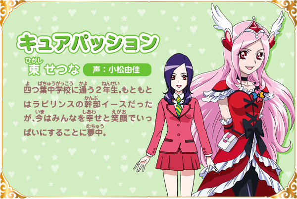 히가시 세츠나 (HIGASI SETSUNA)|東せつな 프로필 [로그] [정보수정] 프로필을 등록하여주세요. 설정화 [설정화 등록] 삭제 명대사 [명대사 등록] 명대사를 등록하여주세요. 허긋토! 프리큐어 ♡ 두사람은 프리큐어|2018.10.27 프리큐어 올스타즈 모두 함께 노래하는 기적의 마법!|2016.03.19 프리큐어 올스타즈 봄의 카니발♪|2015.03.14 프리큐어 올스타즈 뉴 스테이지 3 영원한 친구|2014.03.15 프리큐어 올스타즈 뉴스테이지2 마음의 친구|2013.03.16 프리큐어 올스타즈New Stage 미래의 친구들|2012.03.17 프리큐어 올스타즈 dx 3 - 미래에 닿아라! 세계를 잇는☆무지개빛 꽃|2011.03.19 프리큐어 올스타즈DX2 희망의 빛, 레인보우쥬엘을 지켜라|2010.03.20 프레시 프리큐어|2009.02.01