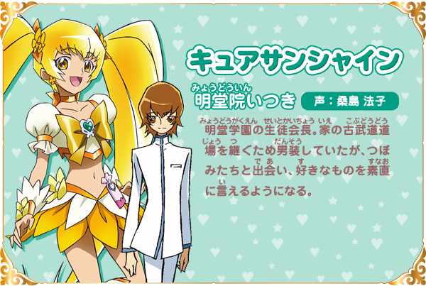 묘도인 이츠키 (MYODOIN ITSUKI)|明堂院いつき 프로필 [로그] [정보수정] 프로필을 등록하여주세요. 설정화 [설정화 등록] 삭제 명대사 [명대사 등록] 명대사를 등록하여주세요. 허긋토! 프리큐어 ♡ 두사람은 프리큐어|2018.10.27 프리큐어 올스타즈 모두 함께 노래하는 기적의 마법!|2016.03.19 프리큐어 올스타즈 봄의 카니발♪|2015.03.14 프리큐어 올스타즈 뉴 스테이지 3 영원한 친구|2014.03.15 프리큐어 올스타즈 뉴스테이지2 마음의 친구|2013.03.16 프리큐어 올스타즈New Stage 미래의 친구들|2012.03.17 프리큐어 올스타즈 dx 3 - 미래에 닿아라! 세계를 잇는☆무지개빛 꽃|2011.03.19 하트 캐치 프리큐어|2010.02.07