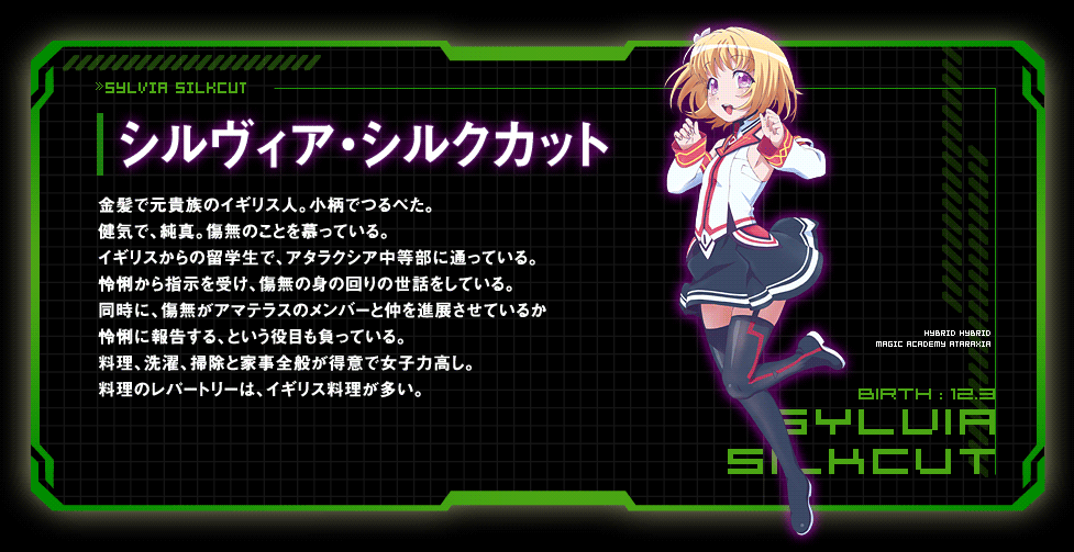 실비아 실크컷 (SYLVIA SILKCUT)|シルヴィア・シルクカット 생일 12.03 신장 140cm 사이즈 63-49-68 프로필 [로그] [정보수정] 프로필을 등록하여주세요. 설정화 [설정화 등록] 설정화를 등록하여주세요. 명대사 [명대사 등록] 수정삭제대장님! 마장학원 H×H|2016.07.06