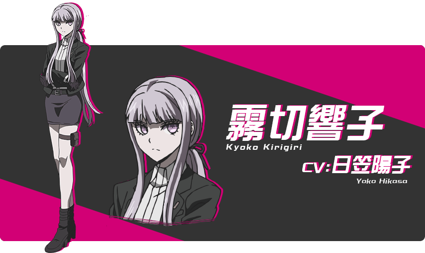 키리기리 쿄코 (KIRIGIRI KYOUKO)|霧切響子 프로필 [로그] [정보수정] 프로필을 등록하여주세요. 설정화 [설정화 등록] 삭제 명대사 [명대사 등록] 명대사를 등록하여주세요. 단간론파 3 -The End of 키보가미네 학원- 미래편|2016.07.11 단간론파 - 희망의 학원과 절망의 고교생|2013.07.05