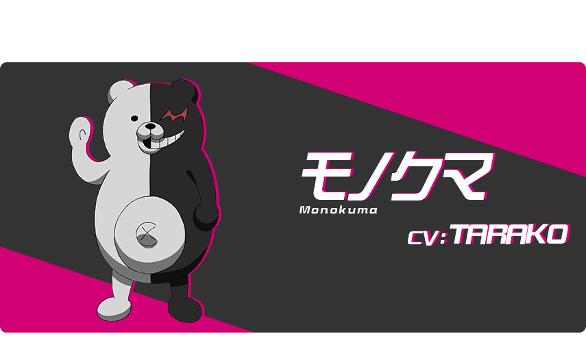 모노쿠마 (MONOKUMA)|モノクマ 프로필 [로그] [정보수정] 프로필을 등록하여주세요. 설정화 [설정화 등록] 삭제 명대사 [명대사 등록] 명대사를 등록하여주세요. 단간론파 3 -The End of 키보가미네 학원- 미래편|2016.07.11 단간론파 - 희망의 학원과 절망의 고교생|2013.07.05