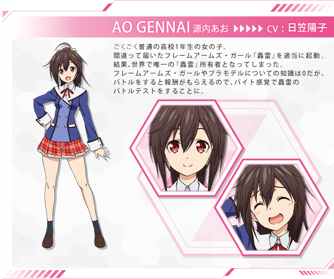 겐나이 아오 (GENNAI AO)|源内あお 프로필 [로그] [정보수정] 프로필을 등록하여주세요. 설정화 [설정화 등록] 삭제 명대사 [명대사 등록] 명대사를 등록하여주세요. 프레임 암즈 걸: 캬캬우후후한 원더랜드|2019.06.29 프레임 암즈 걸|2017.04.04