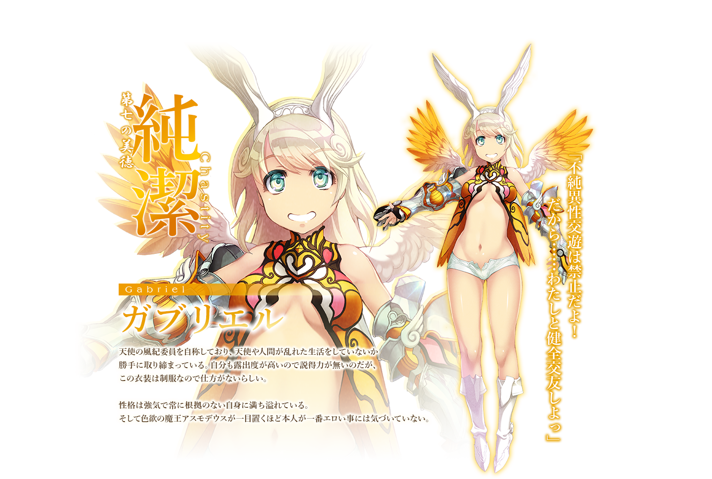 가브리엘 (GABRIEL)|ガブリエル 프로필 [로그] [정보수정] 프로필을 등록하여주세요. 설정화 [설정화 등록] 삭제 명대사 [명대사 등록] 명대사를 등록하여주세요. 알바 뛰는 마왕님!!|2022.07.14 인섹트 랜드|2022.04.04 일곱 개의 미덕|2018.01.27 신격의 바하무트 GENESIS|2014.10.06 젝스 이그니션|2014.01.10 스타 오션 EX|2001.04.03 천사가 될 거야|1999.04.07