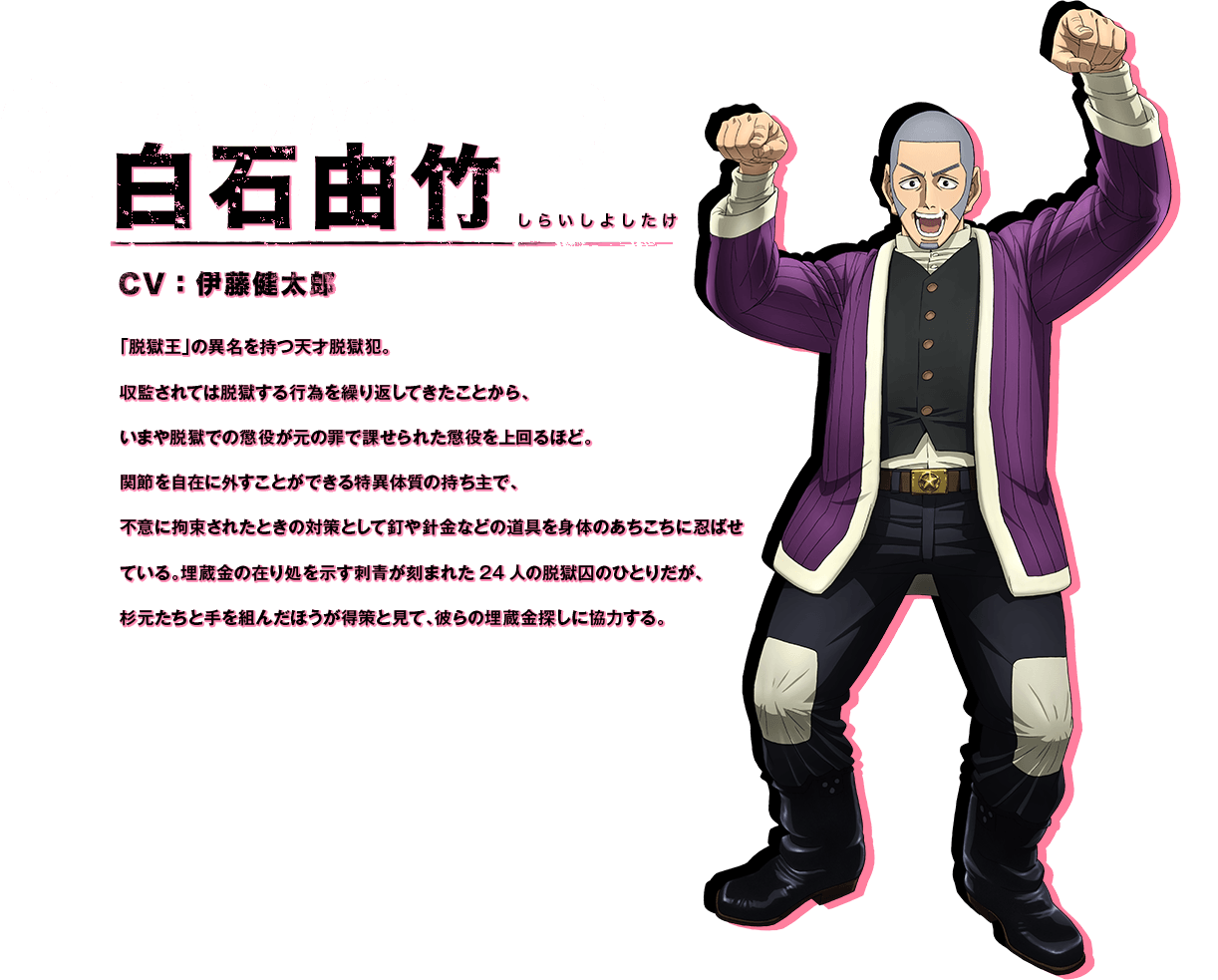 시라이시 요시타케 (SHIRAISHI YOSHITAKE)|白石由竹 프로필 [로그] [정보수정] 프로필을 등록하여주세요. 설정화 [설정화 등록] 삭제 명대사 [명대사 등록] 명대사를 등록하여주세요. 골든 카무이 (2022)|2023.04.03 골든 카무이 (2020)|2020.10.05 골든 카무이|2018.04.09