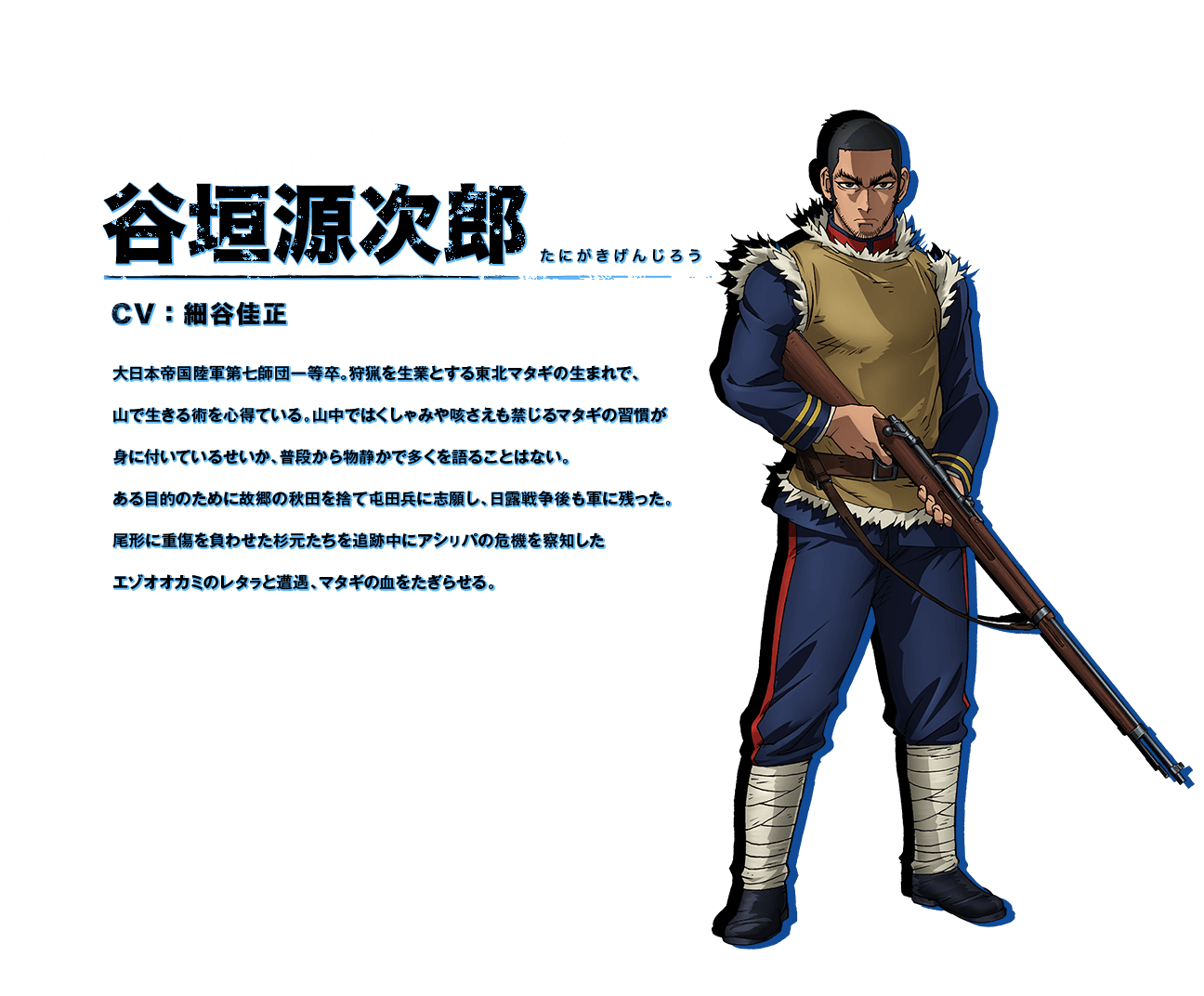 타니가키 겐지로 (TANIGAKI GENJIROU)|谷垣源次郎 프로필 [로그] [정보수정] 프로필을 등록하여주세요. 설정화 [설정화 등록] 삭제 명대사 [명대사 등록] 명대사를 등록하여주세요. 골든 카무이 (2022)|2023.04.03 골든 카무이 (2020)|2020.10.05 골든 카무이|2018.04.09