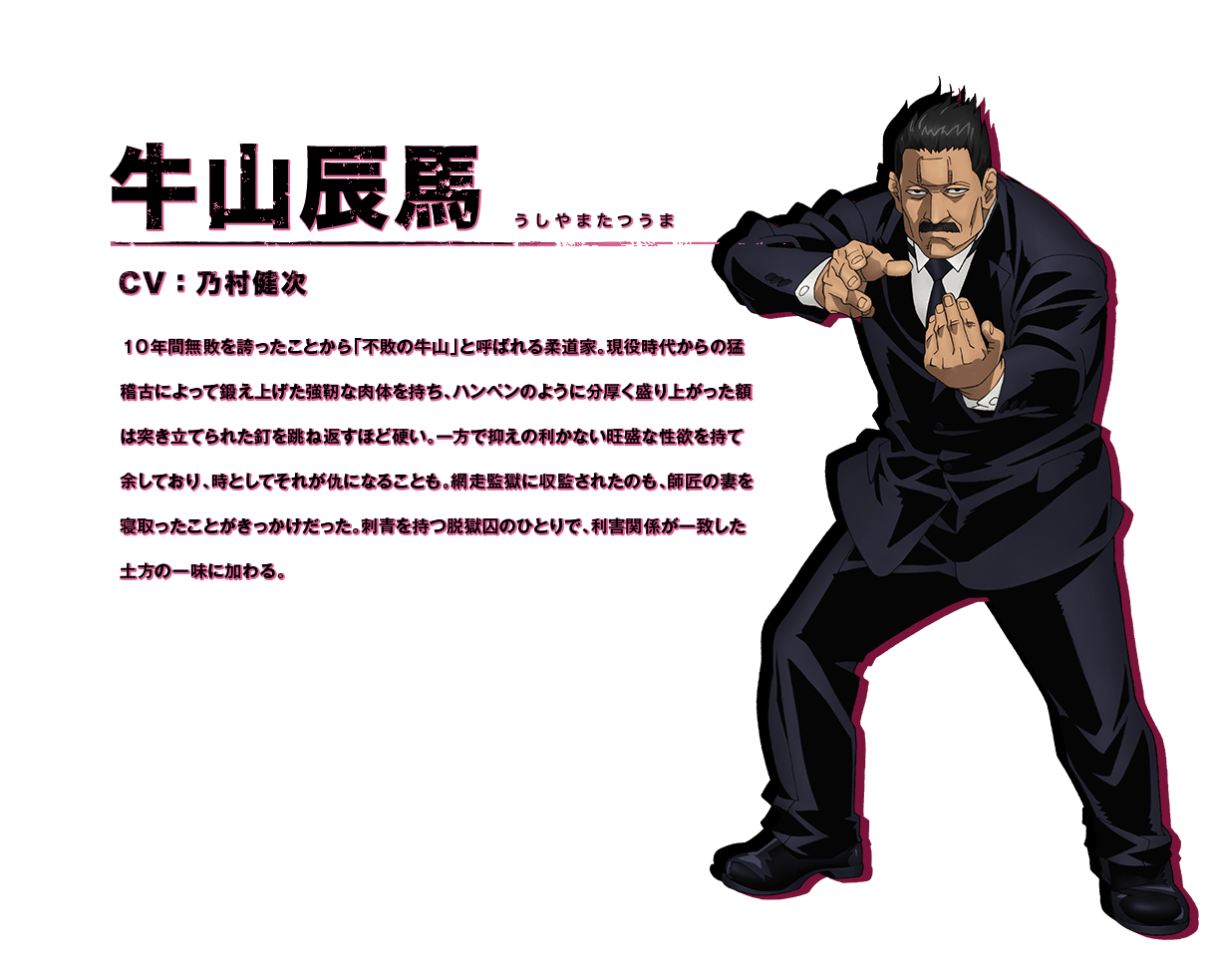 우시야마 타츠마 (USHIYAMA TATSUMA)|牛山辰馬 프로필 [로그] [정보수정] 프로필을 등록하여주세요. 설정화 [설정화 등록] 삭제 명대사 [명대사 등록] 명대사를 등록하여주세요. 골든 카무이 (2022)|2023.04.03 골든 카무이 (2020)|2020.10.05 골든 카무이|2018.04.09