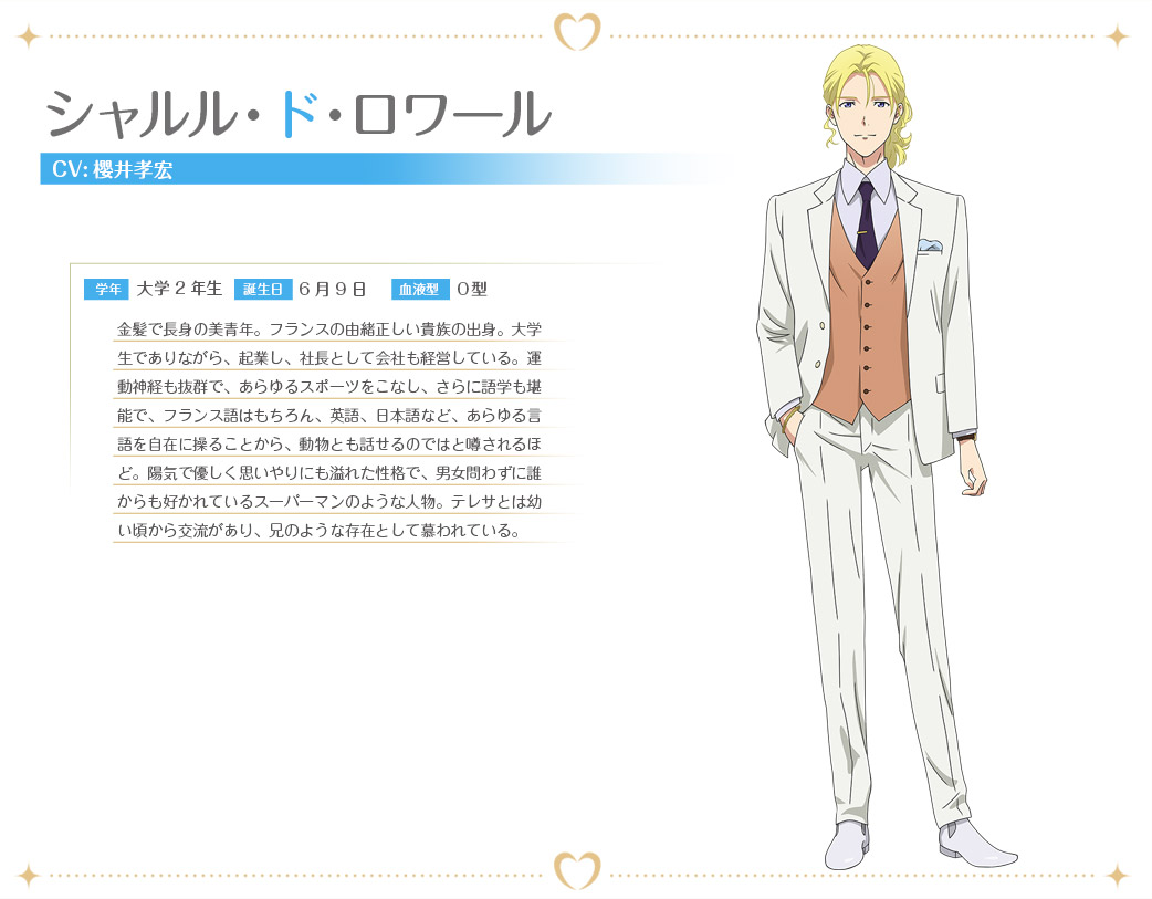 샤를 드 루와르 (SHARULU DO RUWALU)|シャルル・ド・ロワール 프로필 [로그] [정보수정] 프로필을 등록하여주세요. 설정화 [설정화 등록] 삭제 명대사 [명대사 등록] 명대사를 등록하여주세요. 타다 군은 사랑을 하지 않는다|2018.04.05