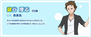 카기타니 아츠시 (KAGITANI ATSUSHI)|鍵谷厚志 프로필 [로그] [정보수정] 프로필을 등록하여주세요. 설정화 [설정화 등록] 삭제 명대사 [명대사 등록] 명대사를 등록하여주세요. 하늘과 바다 사이|2018.10.04