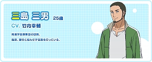 미시마 미츠오 (MISHIMA MITSUO)|三島三男 프로필 [로그] [정보수정] 프로필을 등록하여주세요. 설정화 [설정화 등록] 삭제 명대사 [명대사 등록] 명대사를 등록하여주세요. 하늘과 바다 사이|2018.10.04
