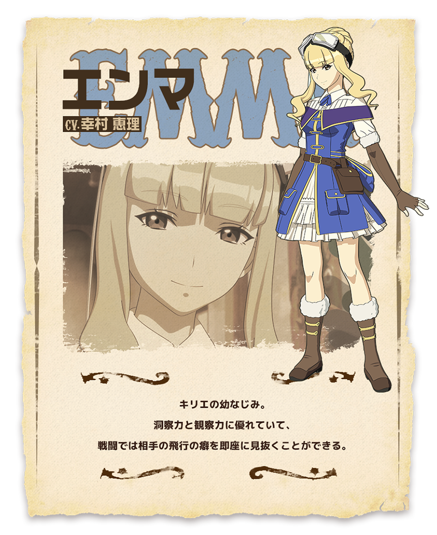 엔마 (EMMA)|エンマ 프로필 [로그] [정보수정] 프로필을 등록하여주세요. 설정화 [설정화 등록] 삭제 명대사 [명대사 등록] 명대사를 등록하여주세요. 황야의 코토부키 비행대|2019.01.13 유유백서|1992.10.10