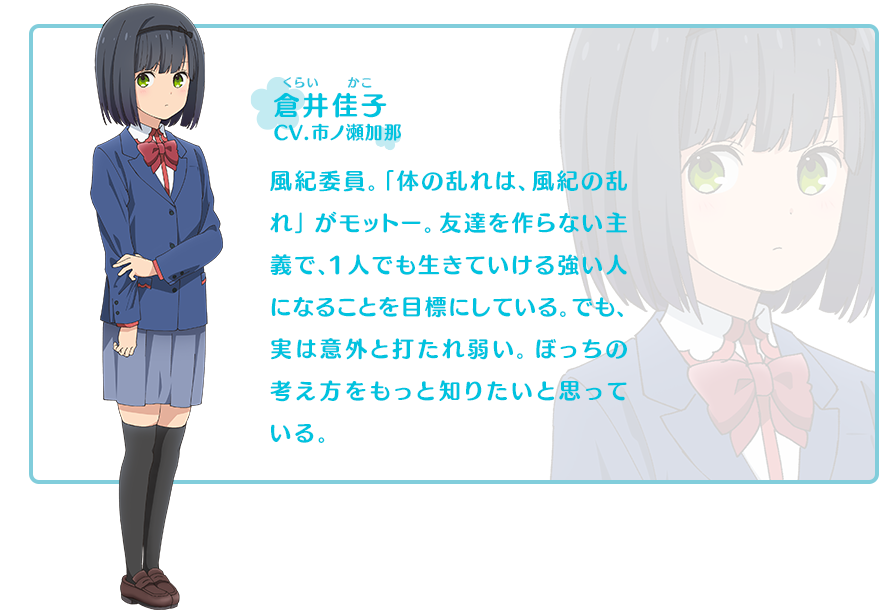 쿠라이 카코 (KURAI KAKO)|倉井佳子 프로필 [로그] [정보수정] 프로필을 등록하여주세요. 설정화 [설정화 등록] 삭제 명대사 [명대사 등록] 명대사를 등록하여주세요. 히토리 봇치의 ○○생활|2019.04.06