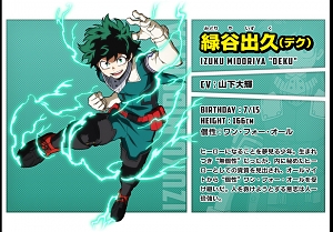 미도리야 이즈쿠 (MIDORIYA IZUKU)|緑谷出久 프로필 [로그] [정보수정] 프로필을 등록하여주세요. 설정화 [설정화 등록] 삭제 명대사 [명대사 등록] 명대사를 등록하여주세요. 나의 히어로 아카데미아 (2024)|2024.05.04 나의 히어로 아카데미아 (2022)|2022.10.01 나의 히어로 아카데미아 (2021)|2021.03.27 나의 히어로 아카데미아 The Movie 히어로즈 라이징|2019.12.20 나의 히어로 아카데미아 (2019)|2019.10.12 나의 히어로 아카데미아 The Movie: 두 명의 히어로|2018.09.24 나의 히어로 아카데미아 3|2018.04.07 나의 히어로 아카데미아 2|2017.04.01 나의 히어로 아카데미아|2016.04.03