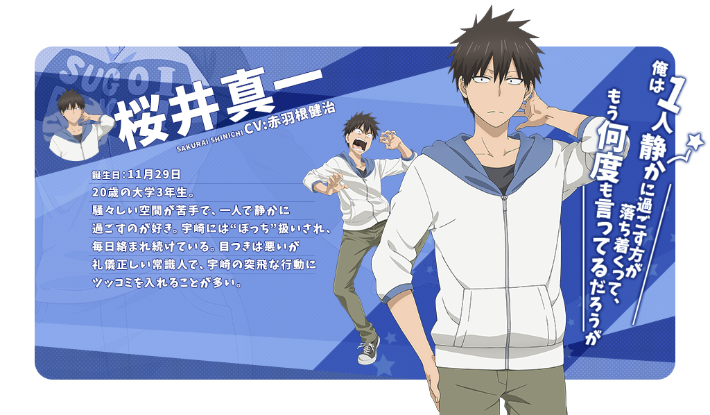 사쿠라이 신이치 (SAKURAI SINICHI)|桜井真一 생일 11.29 프로필 [로그] [정보수정] 프로필을 등록하여주세요. 설정화 [설정화 등록] 삭제 명대사 [명대사 등록] 명대사를 등록하여주세요. 우자키 양은 놀고 싶어! ω|2022.10.01 우자키 양은 놀고 싶어!|2020.07.10