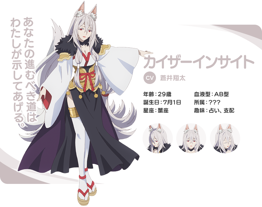 카이저 인사이트 (KAIZA INSAIT)|カイザーインサイト 나이 29 생일 07.01 혈액형 AB 프로필 [로그] [정보수정] 프로필을 등록하여주세요. 설정화 [설정화 등록] 삭제 명대사 [명대사 등록] 명대사를 등록하여주세요. 프린세스 커넥트! Re:Dive season 2|2022.01.11 프린세스 커넥트! Re:Dive|2020.04.07
