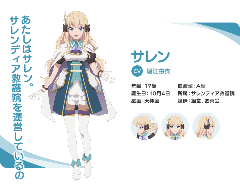 사렌 (SAREN)|サレン 나이 17 생일 10.04 혈액형 A 신장 156cm 프로필 [로그] [정보수정] 프로필을 등록하여주세요. 설정화 [설정화 등록] 삭제 명대사 [명대사 등록] 명대사를 등록하여주세요. 프린세스 커넥트! Re:Dive season 2|2022.01.11 프린세스 커넥트! Re:Dive|2020.04.07