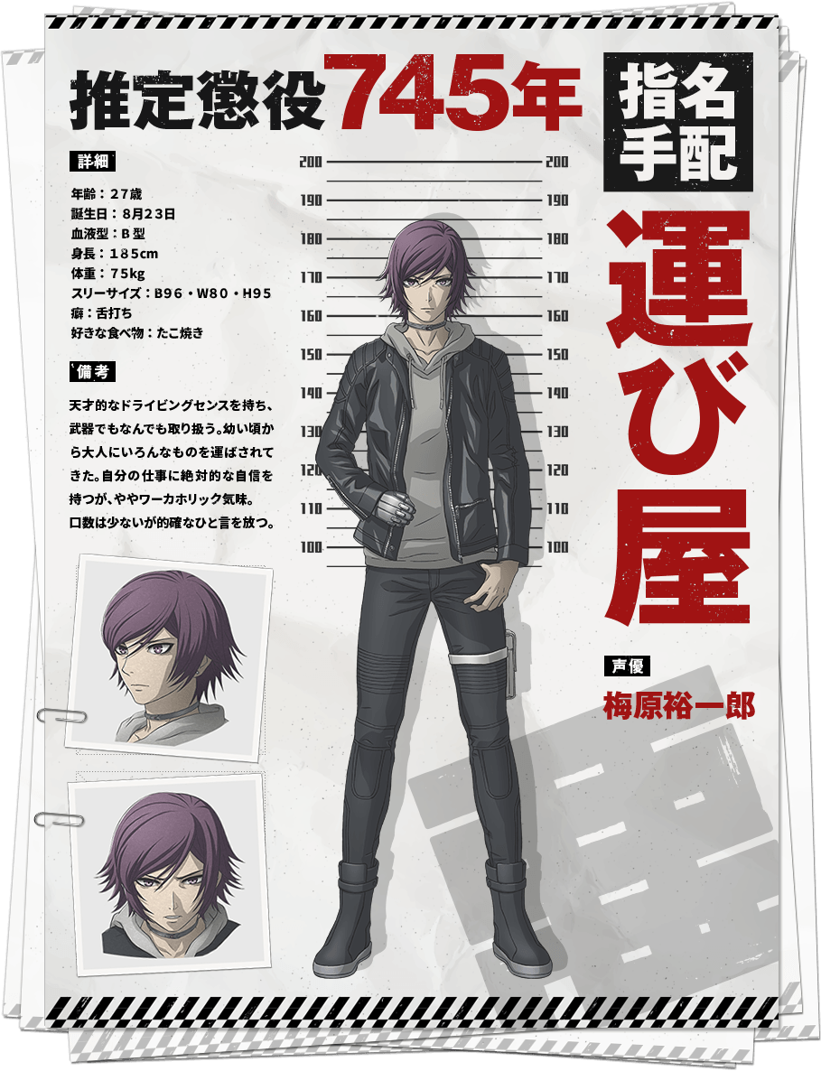 운반책 (HAKOBIYA)|運び屋 나이 27 생일 08.23 혈액형 B 신장 185cm 사이즈 96-80-95 프로필 [로그] [정보수정] 프로필을 등록하여주세요. 설정화 [설정화 등록] 삭제 명대사 [명대사 등록] 명대사를 등록하여주세요. 아쿠다마 드라이브|2020.10.08