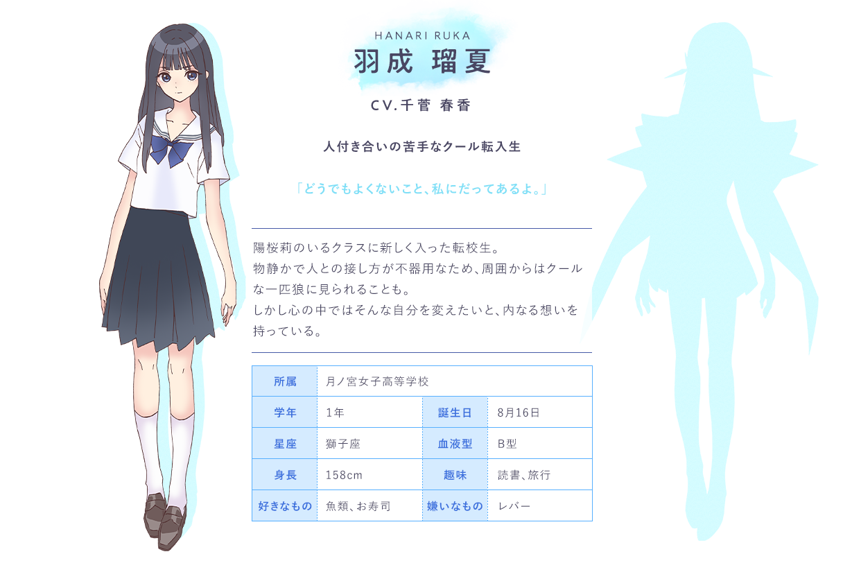 하나리 루카 (HANARI RUKA)|羽成瑠夏 프로필 [로그] [정보수정] 프로필을 등록하여주세요. 설정화 [설정화 등록] 삭제 명대사 [명대사 등록] 명대사를 등록하여주세요. 블루 리플렉션 레이|2021.04.10