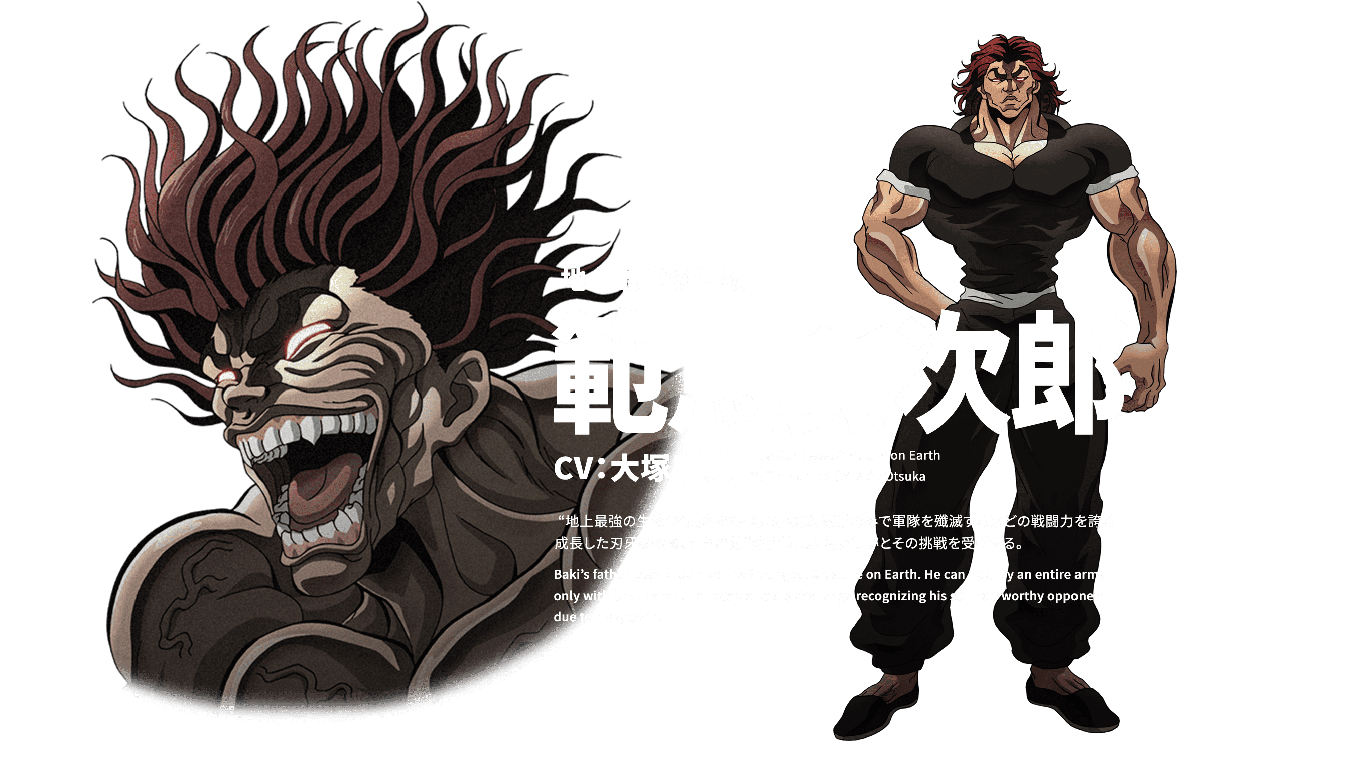 한마 유지로 (HANMA YUUJIRO)|範馬勇次郎 프로필 [로그] [정보수정] 프로필을 등록하여주세요. 설정화 [설정화 등록] 삭제 명대사 [명대사 등록] 명대사를 등록하여주세요. 한마 바키 2기|2023.07.26 한마 바키|2021.09.30 바키 2기|2020.07.07 바키|2018.07.02 그래플러 바키|2001.01.08