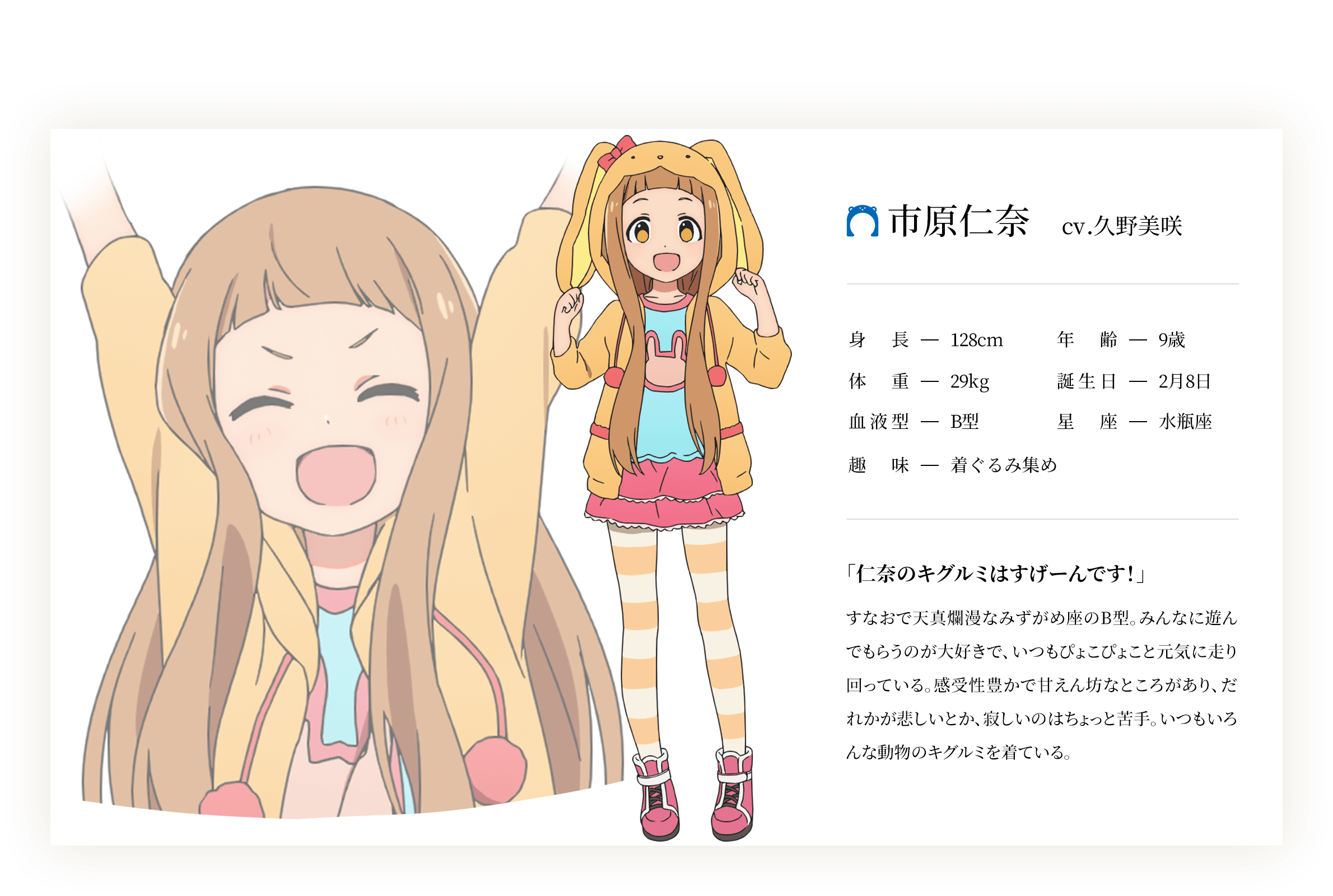 이치하라 니나 (ICHIHARA NINA)|市原仁奈 나이 9 생일 02.08 혈액형 B 신장 128cm 프로필 [로그] [정보수정] 프로필을 등록하여주세요. 설정화 [설정화 등록] 삭제 명대사 [명대사 등록] 명대사를 등록하여주세요. 아이돌마스터 신데렐라 걸즈 U149 OVA|2023.10.25 아이돌마스터 신데렐라 걸즈 U149|2023.04.06 아이돌 마스터 신데렐라 걸즈 2nd 시즌|2015.07.18