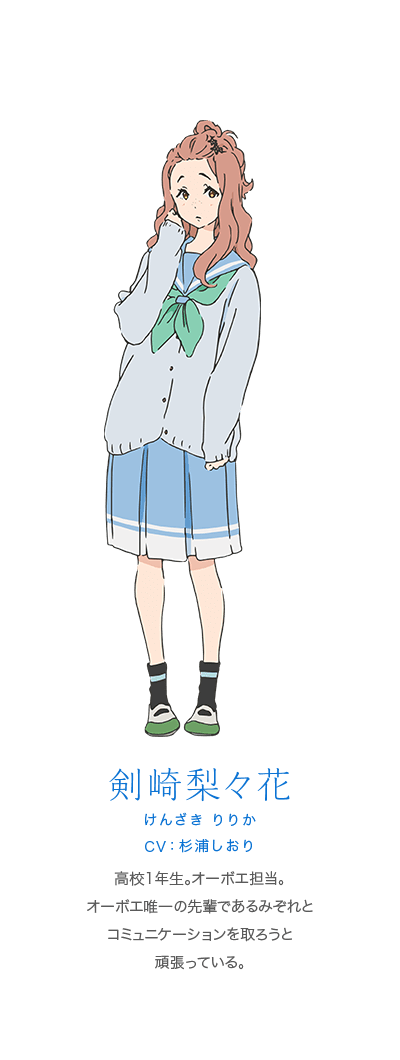 켄자키 리리카 (KENZAKI RIRIKA)|剣崎梨々花 프로필 [로그] [정보수정] 프로필을 등록하여주세요. 설정화 [설정화 등록] 삭제 명대사 [명대사 등록] 명대사를 등록하여주세요. 울려라! 유포니엄 3|2024.04.07 특별편 울려라! 유포니엄: 앙상블 콘테스트|2023.08.04 리즈와 파랑새|2018.04.21